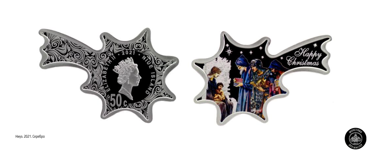 Ниуэ, самоуправляемое государственное образование, находящееся в свободной ассоциации с Новой Зеландией, выпустила в 2021 году монеты необычной формы - в виде Рождественской звезды. Они были отчеканены на Литовском монетном дворе. Всего было выпущено 5 тыс. экземпляров. На аверсе расположена королева Елизавета II, так как на 2021 год она была правящим монархом стран Содружества, в которое входит Новая Зеландия. Также значится номинал, год и имя королевы. Сама звезда украшена изящным орнаментом. На реверсе написана «Happy Christmas», а на основной части помещена библейская сцена - посещение волхвами Иисуса Христа после его рождениями. В верхней части реверса можно обнаружить Вифлеемскую звезду. Саму монету столь необычной формы можно воспринимать тоже как Вифлеемскую звезду. Монеты сделаны из серебра 925 пробы, номинал - 50 центов, вес составляет всего 8 граммов, диаметр - 28,0 х 41,0 мм. ✅ Подписаться: ВКонтакте и Телеграм