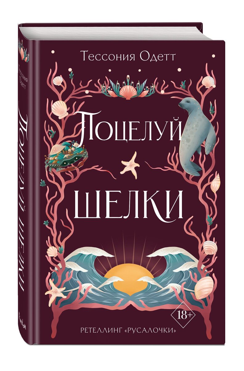 Продолжение серии книг Тессонии Одетт по мотивам известных сказок. На этот раз писательница решила порадовать читателей ретеллингом Русалочки. «Поцелуй шелки» – история о прекрасной принцессе-тюлене Мэйзи (также известная под именем Перл). Впервые с розоволосой барышней и её другом – эльфом-крабом Падаксисом мы встретились в предыдущей книге «Сердце принца –ворона», где стали свидетелем её побега с отбора невест для темного принца. Сюжет. В Поцелуе шелки писательница, видимо, так прикипевшая к популярной теме среди Ру ЛФР, также бросает девушку в борьбу за руку и другие части супового набора прекрасного Дориана. Этого юношу наша тюлень-клептоманка парой дней ранее спасла от верной гибели. Но прекрасная Перл (очень оригинальное имя, не правда ли?), губы которой несут смерть в поцелуе, совсем не желает связывать свою жизнь с таинственным служителем религиозного ордена, о прошлом которого ходят очень неприятные слухи. Её цель – избавиться от собственного проклятья, убив ни о чём не подоз