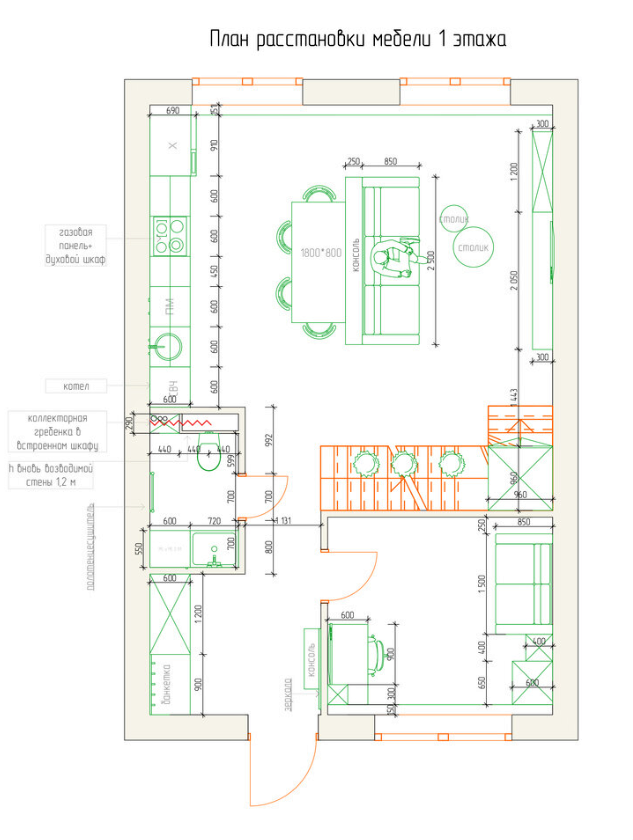 Данный дом является классическим таунхаусом и принадлежит нашим героям уже несколько лет. И чтобы жить в доме было максимально комфортно, нужно было создать идеальный интерьер, который будет много лет смотреться стильным и современным. Для этого владельцы таунхауса обратились в дизайнерскую студию. Проект Прихожая Входную группу выделили темным цветом. На полу уложили керамогранит с имитацией деревянного покрытия. С одной стороны установили большое зеркальное панно, а напротив него появилась закрытая и открытая система хранения со светлыми фасадами. Кухня-гостиная Кухню и гостиную было решено объединить в одно большое пространство. По левую руку от входа в помещение разместили кухонную зону. Здесь установлен линейный кухонный гарнитур с антресольными секциями для хранения. Нижние и боковые фасады выкрасили в цвет стен, чтобы они смотрелись, как единое целое. Фартук изготовлен из оникса и притягивает на себя все взгляды. Напротив гарнитура организовали просторную столовую группу с боль