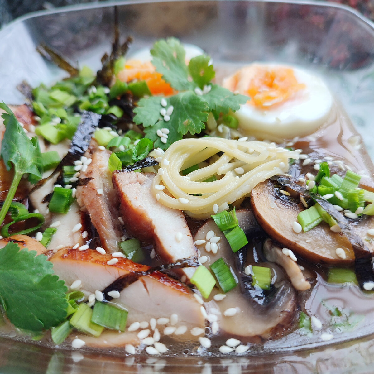 Рамэн - пшеничная лапша с курицей, нори и шампиньонами в ароматном бульоне