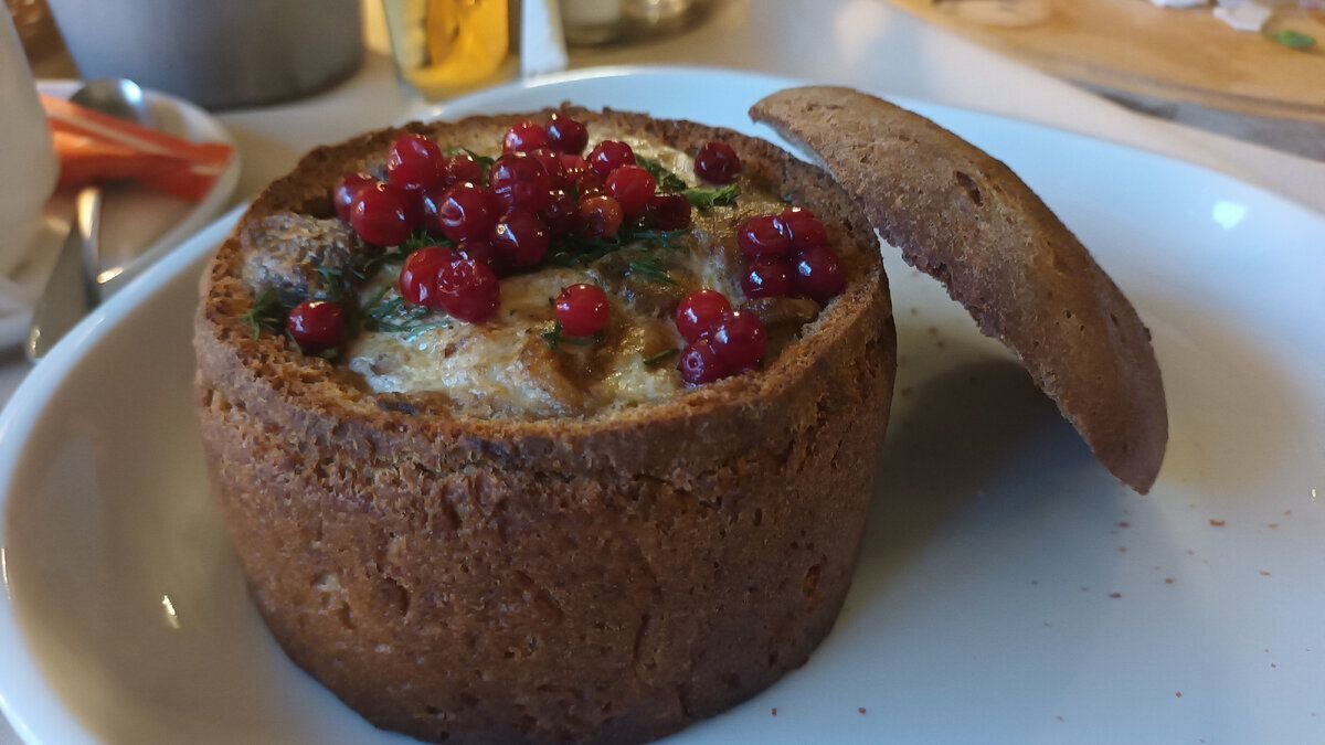 Заказали оленину в хлебнице с брусникой и карельскими травами - получилось очень необычное, сочное и вкусное блюдо!