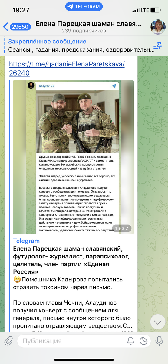 ‼️‼️ Опасная ситуация, вокруг людей Рамзана Кадырова, внутри его аппарата около его людей есть те, кто против его позиции по СВО. Об опасности его командирам , я уже Рамзана предупреждала в начале СВО. Необходима внутренняя проверка всех, кто около командиров Рамзана Кадырова и на передовой на СВО и в его аппарате Главы Чечни. ©Елена Парецкая #ЕленаПарецкая #предсказатель #журналистфутуролог #славянскаяшаманка #РамзанКадыров #главаЧечни #АптыАлаудинов #Ахмат #СВО https://t.me/gadanieElenaParetskaya/26240