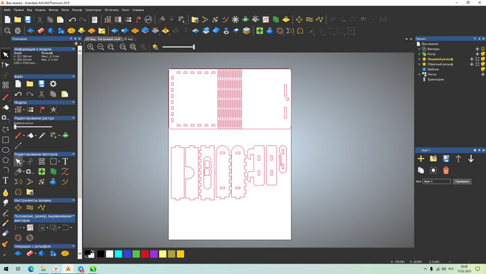 По просьбе решил сделать пост о создании управляющей программы для лазерной резки. Делаю их в программе ArtCAM, она очень функциональна и удобна для меня. В ней мне очень удобно работать с векторными изображениями. Для примера покажу уже на созданной программе, которую делал по просьбе друга. За пример взял модель для портсигара с интернета. Но мне нужны были совершенно другие размеры, начал планировать свое. По заказу нужна была внутренняя часть размерами 100*170 мм. От этого размера начинаю строить все чертежи. Первый раз было сложно, предугадать все отверстия на своих местах, что относительно чего должно быть расположено, по итогу получился вот такой чертеж. Все этапы описывать не стал, получится непонятно (попытался), лучше позже сделаю видео подробное. Так же можно ArtCAM позволяет перевести растровое изображение в вектор. Для примера сделал я скрин нужной мне гравировки. Выбираю перевести функцию Растр в Вектор, затем уменьшаю количество цветов до 2, здесь легко, мне нужно просто