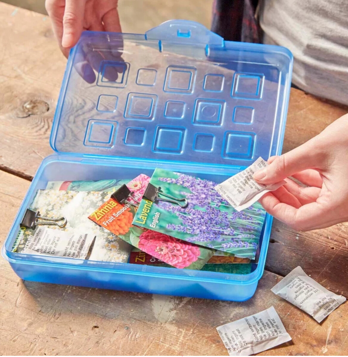 Никогда не выбрасывайте пакетики кремнезема, которые кладут в магазинах в новую одежду. Кремнезем отлично впитывает влагу. И когда после весенней посадки у вас останутся не использованные до конца пакетики с семенами, сложите их в герметичный короб и добавьте к нему пару пакетиков с волшебными бесцветными кристаллами. Кремнезем заберет всю влагу и не даст развиться плесени или прорасти семенам.