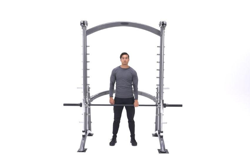Шраги одной рукой в тренажере Смита – это упражнения на верхнюю часть тела, для проработки трапециевидных мышц. Выполняется в среднем или высоком диапазоне повторений, например 8-12 за сет и более. Используется как часть тренировки плеч или трапеций. Преимущества: Мышечная группа: Трапеции Тип упражнения: Изолирующие Оборудование: Тренажер Техника выполнения упражнения