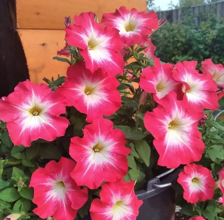 - Петунии - это однолетние цветы, которые, как правило, выращиваются в кашпо. Я сажаю в 10-ти литровые горшки и строительные вёдра.