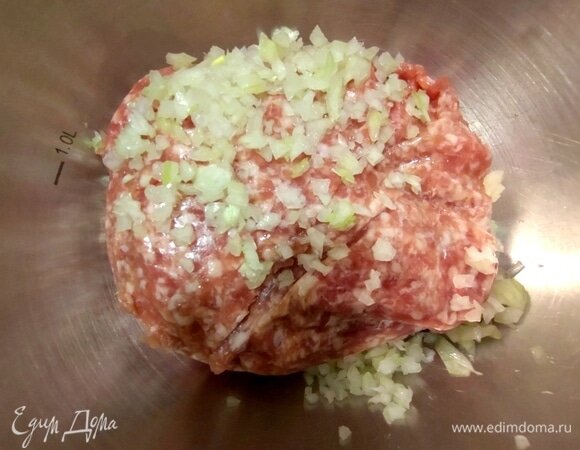 картофель - 1по вкусу Шаг: 1 Берем свиной или смешанный фарш. Шаг: 2 Вбить в фарш яйцо, добавить измельченный лук. Шаг: 3 Поперчить, посолить. Смешать, отбить несколько минут, накрыть и убрать в холодильник на час. Шаг: 4 Лук нарезать полукольцами, грибы измельчить (у меня из заморозки). Шаг: 5 Морковь натереть крупно (тоже из заморозк