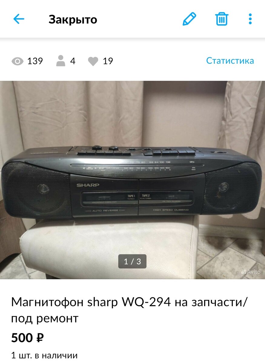 Милейший дедушка забрал старый магнитофон. Столько добра и тёплых пожеланий в свой адрес я ещё не слышала от покупателей на Авито. Настроение до сих пор приподнято после этой продажи.