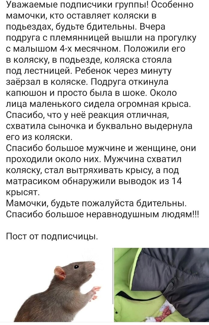 Прочитала тут новость, всем оставляющим коляски в подъезде посвящается: Лично я даже ледянку в подъезде не оставлю. 3 года таскала сама коляску. Даже больше с двумя детьми. И в мыслях не было оставлять ее. Как потом класть туда ребенка? Когда не знаешь, что там с этой коляской было в твое отсутствие. Икто и что там по ней ползает по ночам тоже неизвестно, и потом ещё туда ребенка маленького класть это кошмар, заразы всякой можно подцепить. Ведь не знаешь, что происходит, когда не видишь ее, кто-то может зайти плюнуть, особенно подростки всякие, да и что угодно там с ней могут делать пока не видно. Это даже если упустить момент, что незаконно хранить вещи в подъезде по технике противопожарной безопасности. Видела я таких, кто оставляет в подъезде и состояние их колясок - которые не жалко в случае чего. Я для себя не приемлю такое - оставлять свои личные вещи в общем доступе. Люблю чистое, поэтому лучше уж дома.