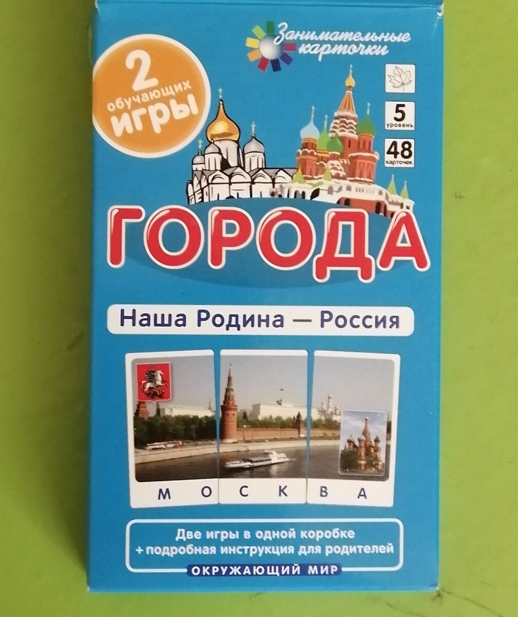 Игра, которую хочу показать интересна для любителей географии: В первом варианте игры ребятам раздаются кусочки карточек, из которых необходимо собрать изображения городов: Для этого необходимо сначала договориться, кто какие города собирает, и с кем можно поменяться, чтобы получить недостающие детали. Второй вариант игры заключается в следующем: Одной группе ребят выдаются карточки с названием рек, другой - с названием городов. Цель игры - соединить реку и город, который стоит на этой реке.