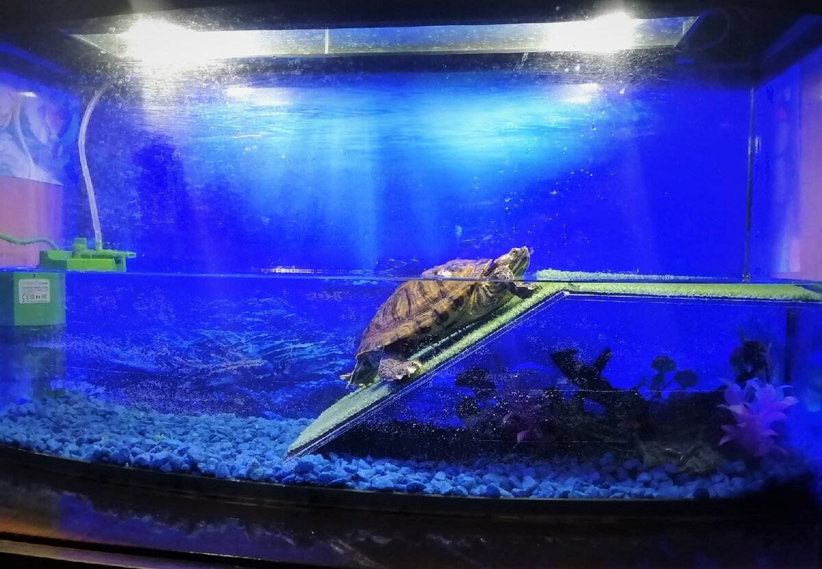 Наша семья стала исключением, поскольку мы просто тащимся по рептилиям, хладнокровным, особенно муж. Я всегда хотела завести черепашку, но поскольку мы жили в поселке, а затем в маленькой арендованной квартире в городе, у нас просто не было возможности. До одного момента) Однажды муж увидел в объявлении ВК что отдают красноухую черепашку вместе с аквариумом. И мы поняли – надо брать! И вот спустя время это создание уже шипело и вырывалось у меня из рук. (За ее вздорный характер мы назвали ее Кусака). Ей было страшно: новое окружение, незнакомые люди, поездка – сплошной стресс. Она долго не могла привыкнуть, вылезала из аквариума, шипела, барахталась в воде днем и ночью. Аквариум был для нее маленький, на 30 литров (на тот момент черепашке было 3 года), не было ни крышки, ни лампы, ни термометра. Через пару месяцев она привыкла к нам. Но мы понимали, что условия для нее не подходящие.