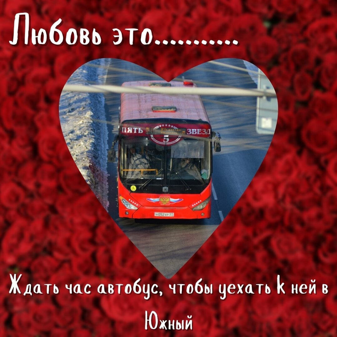 Сегодня, 14 февраля, отмечается День всех влюбленных. В этот светлый праздник людям, тебе небезразличным, принято дарить валентинки - небольшие открытки, которые должны выразить симпатию к объекту ваших чувств. Специально для наших читателей DVHAB собрал небольшую подборку валентинок, в которых любовь выражается через призму актуальных для краевого центра ситуаций. Симпатия между двумя людьми определенно будет крепнуть, если вы на протяжении часа вместе ждете автобус на остановке. У вас появляется больше времени, чтобы лучше узнать друг друга. Чувства может укрепить совместное выживание в экстремальной ситуации. Такой, как нападение тигров, которые терроризируют жителей Хабаровского края на протяжении всей зимы. Ну и, конечно же, любовь между двумя хабаровчанами должна быть столь же продолжительной, как и пробки, которые неизменно возникают в краевом центре после прохождения очередного циклона. Напомним, что в России 14 февраля официальным праздником не считается, однако многие жители