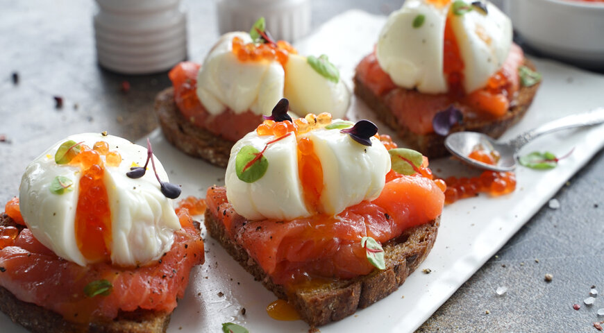 Простой завтрак из яиц — отличный способ начать день с хорошего настроения и зарядиться позитивной энергией на весь день. Каковы особенности этого блюда? Судите сами! ✔️В первую очередь в состав завтрака входят богатые белком яйца, которые придадут вам сил и полноценно «проснуться». ✔️Во-вторых, среди ингредиентов есть семга, которая содержит полезные ненасыщенные жирные кислоты омега-3. Они помогают мозгу начать работать эффективно. ✔️И в-третьих, простой завтрак из яиц включает деревенский цельнозерновой хлеб. Он содержит очень медленные углеводы и поможет вам сохранять спокойствие до ужина без перекусов. ИНГРЕДИЕНТЫ ПОШАГОВЫЙ РЕЦЕПТ ⬇️ кбжу 👍 ПОЛЕЗНЫЙ СОВЕТ В такой быстрый завтрак вы можете добавить ломтики авокадо или соус из него: этот экзотический продукт отлично сочетается как с яйцами, так и со слабосоленой семгой. 👍 КСТАТИ В этом варианте быстрого завтрака вы видите совершенно беспроблемное приготовление яиц-пашот. Они могут получиться столь же нежными, как и обычные, в