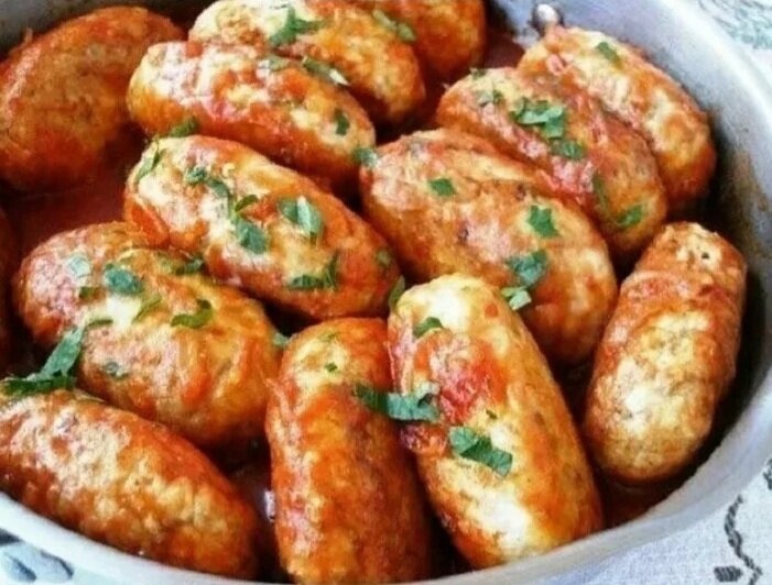 Очень вкусные и полезные котлетки, которые одинаково любят и взрослые, и дети. Ингредиенты: Мясо — 500 г Гречневая крупа — 150 г Яйца — 2 шт. Лук — 2 шт. Томатный соус — 200 г Соль — по вкусу Перец — по вкусу Мука овсяная — для панировки Растительное масло — для обжаривания Приготовление: 1. Гречневую крупу перебрать, вымыть. Всыпать в кипящую подсоленную воду и отварить до готовности. Остудить. 2. Мясо пропустить через мясорубку с одной луковицей. 3. Добавить в фарш яйца, соль и перец по вкусу, тщательно вымесить. 4. Соединить мясной фарш с гречкой, снова хорошо перемешать. 5. Из фарша сформовать котлеты, запанировать их в муке и обжарить полученные гречаники на растительном масле с двух сторон до золотистой корочки. 6. Вторую луковицу нарезать полукольцами и обжарить на растительном масле до золотистого цвета. 7. Влить томатный соус и прогреть. Домашний томатный соус можно заменить покупным томатным соусом или томатной пастой, разведенной с водой в соотношении 1: