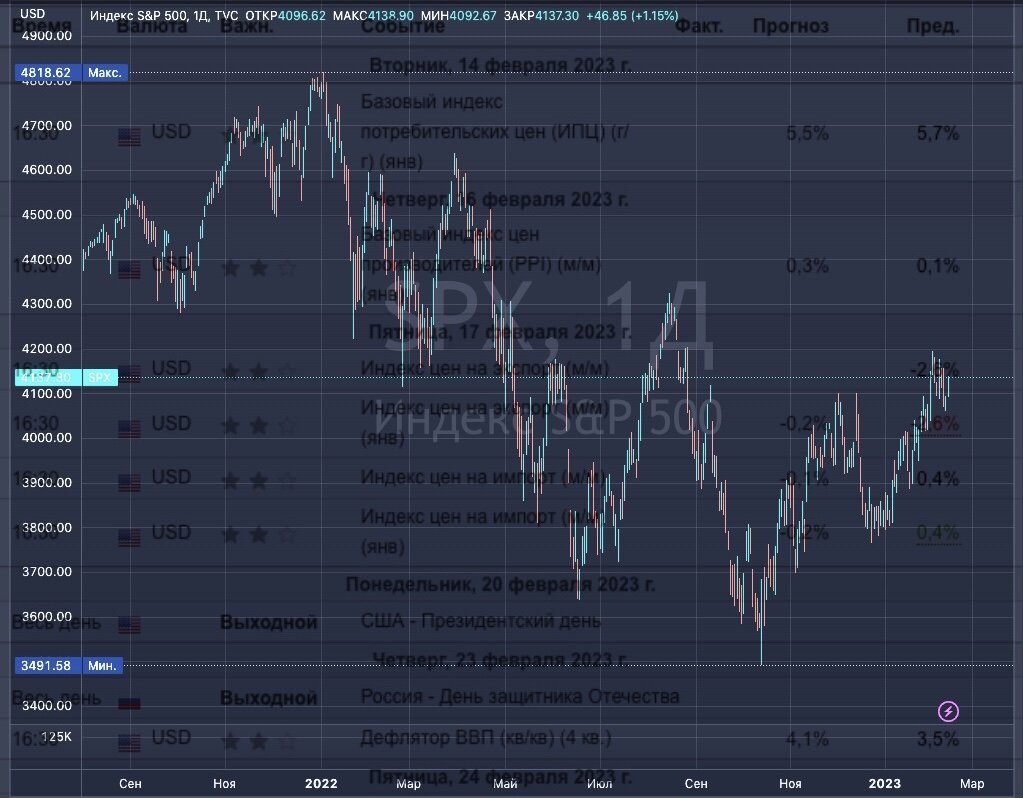 Текущие движения на американском рынке происходят вопреки действиям Федеральной резервной системы (ФРС). Заявления представителей ФРС о том, что ставку поднимут выше 5%, и будут там удерживать до конца года, не встречает особого консенсуса среди инвестдомов.