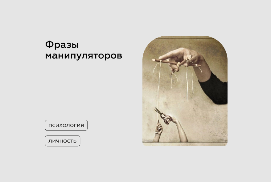 За внешне безобидными фразами может крыться ловкий и хитрый расчёт. Распознать манипуляцию не всегда бывает просто, потому что её основной рычаг - это эмоции, которые перекрывают способность к логическому рассуждению. Сегодня рассмотрим некоторые, казалось бы, обыденные фразы, которыми зачастую пользуются недоброжелатели «Тебе показалось» Фраза, с помощью которой кого угодно можно свести с ума. Она вызывает у жертвы сомнения в собственной адекватности. Формулировка может быть несколько иной, но в любом случае жертву попробуют убедить в том, что в её выводах нет здравого зерна Чаще всего за этим прячется попытка обернуть ситуацию в свою сторону, подать свою версию «правды» как единственно верную, а ваши доводы и аргументы объявить абсурдными Если вы часто слышите эту фразу от близкого человека, коллеги или знакомого, присмотритесь повнимательней, не пытаются ли вас заставить перестать доверять себе Такая манипуляция в особо изощрённых формах называется газлайтингом, и она очень опасна д