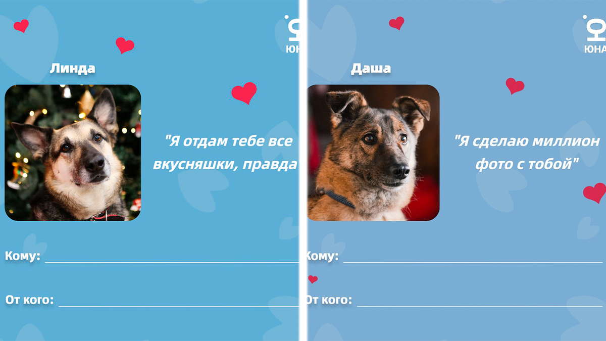 Подмосковный Центр временного содержания бездомных животных «Юна» опубликовал в своем телеграм-канале трогательные виртуальные открытки ко Дню всех влюбленных. При желании их можно скачать, распечатать и подписать. На открытках изображены портреты подопечных Центра — все они ищут дом. «Присылайте открытки с пушистыми подопечными своим самым-самым, — написали сотрудники «Юны». — Уверены, что им будет приятно». На валентинках приютские животные признаются в любви. И говорят, что готовы отдать все вкусняшки и сделать миллион забавных фото вместе. А, например, подопечный приюта кот Шрек с большими щеками говорит, что «хорошего котика должно быть много», хотя он совсем не толстенький, это ракурс! Центр «Юна» расположен в Подольске и занимается реабилитацией животных, оказавшихся в трудной жизненной ситуации. Там всегда можно выбрать себе пушистого друга из числа временных подопечных. Временных — потому что любовь творит чудеса, и уже сотни животных переехали в новые семьи.