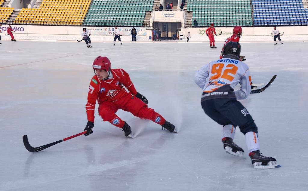 В выходные в Абакан вернулся большой хоккей с мячом. Конечно, кто-то может скептически улыбнуться эпитету «большой». Что же, имеют право — нынешние «Саяны» разительно отличаются и от той команды, что некогда уверенно играла в Суперлиге, и от той, что еще пару лет назад брала Кубок Высшей лиги. Да даже от «Саян» прошлогоднего образца. В чем конкретно разница? Как всегда, в двух составляющих — в игре и в наборе очков. И с тем, и с другим у команды Евгения Ерахтина нынче не очень. Тем важнее домашние матчи. Вот только и на абаканском льду не обошлось без проблем.