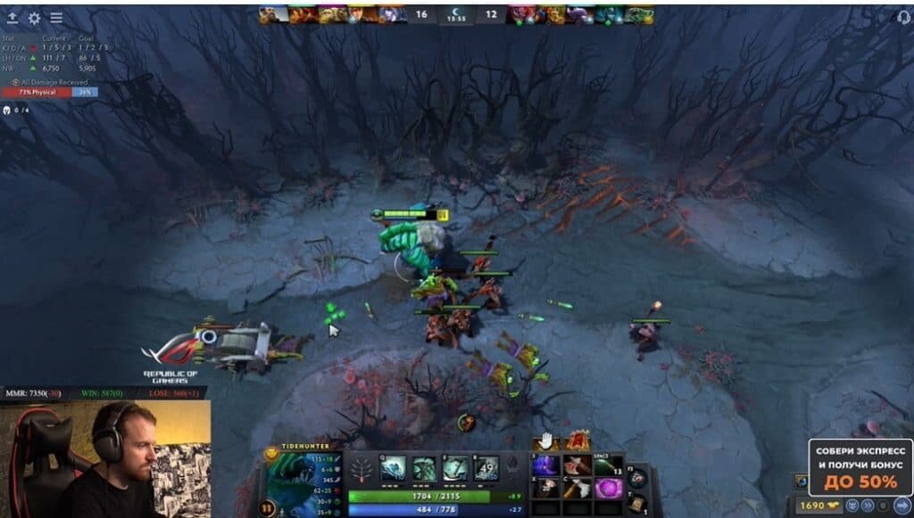 Стриминг Игровой стриминг — это трансляция прохождения игры в реальном времени. Заранее готовить контент не нужно. Нужно определиться только с интересной для зрителей подачей контента. Просто молчаливый стриминг никому не интересен. Обычно он сопровождается комментариями стримера — зрители видят его в маленьком окошке на экране. Этот способ заработка на компьютерных играх подойдет тем, кто не боится взаимодействовать со зрителем в прямом эфире, вести трансляцию и комментировать свои игровые действия. Стриминг популярного российского стримера DreadzTV. Источник Оборудование для стримера. Для стриминга нужны хороший компьютер, надежное интернет-соединение, качественная камера и микрофон. Компьютер должен без проблем справляться с выбранной игрой на максимальных настройках, потому что, помимо игры, ему придется обрабатывать трансляцию. Некоторые используют два компьютера: один — для игры, другой — для обработки и загрузки трансляции. Для качественной картинки и звука понадобится обуст