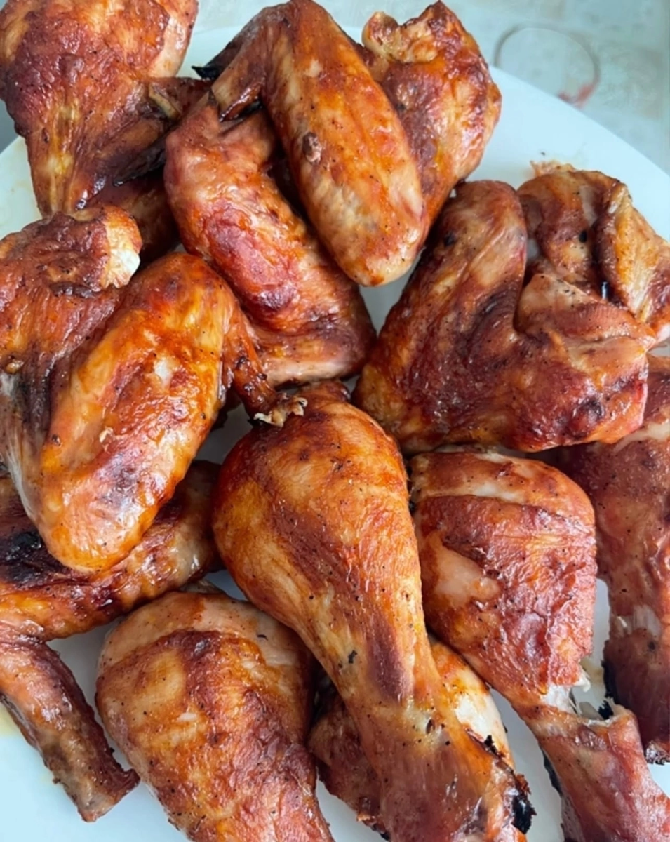 Обалденная вкуснятина 🤤 Ингредиенты: Куриные голени или крылья (у меня 50/50)-1кг. Соевый соус-3ст/л. Томатный соус ( ваш любимый )-2ст/л. Копчённая паприка -1ч/л. Чёрный перец-1ч/л. Чеснок-5 зубчиков . Сливочное масло растительное-20гр. Замариновать и оставить на час . Затем запечь в духовке разогретой до 200С* 30-40 минут. Приятного аппетита !