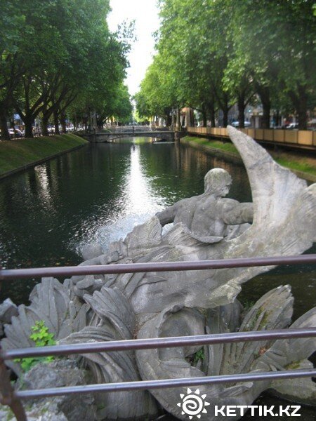 Первый и самый большой — Дюссельдорф. Не знаю почему, такой большой город, нынешняя столица Северного Рейна — Вестфалии, мне показался совершенно неинтересным. Старый центр, который как-то очень незаметно переходит в центр новый, с небоскребами и кучей бетона и металла… Хотя город конечно очень зеленый, но прогуляться по тихим и уютным улочкам здесь не получится — слишком много машин и людей. Дюссельдорф расположен на Рейне, но получил свое название (как и многие немецкие города) от маленькой протекающей через город речушки Дюссель.