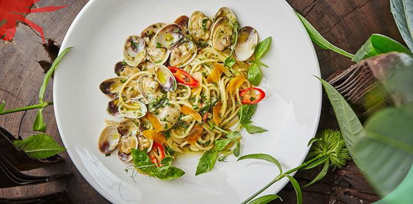 Ингредиенты: Для начала отвариваем спагетти. Затем промываем морковь, сельдерей. Очищаем репчатый лук. Из подготовленных овощей в блендере взбиваем пюре. Берем сковороду, растапливаем сливочное масло и обжариваем нарезанные чеснок, лук-шалот, перец чили. Далее добавляем вонголе, белое вино, овощное пюре, тертый сыр пармезан. Обжаривать до готовности. Берем тарелку, кладем спагетти, сверху накладываем вонголе. Украшаем икрой боттарга. Блюдо готово. Приятного аппетита! Источник: https://wildcrab.ru/news?id=1904