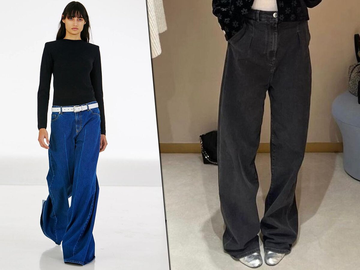 Пока инфлюенсеры продолжают носить «безопасные» прямые джинсы, дизайнеры рекомендуют этой весной выбирать именно мешковатый, объемный деним. На повестке дня серые волочащиеся джинсы Balenciaga, которые бренд советует носит с водолазками из лайкры каждый день, благородно-синяя модель Tibi с неровными швами, потертые Diesel с накладными карманами и разнообразными вставками, а также варианты с низкой посадкой, которые приняли эстафету и вернулись к нам из нулевых.