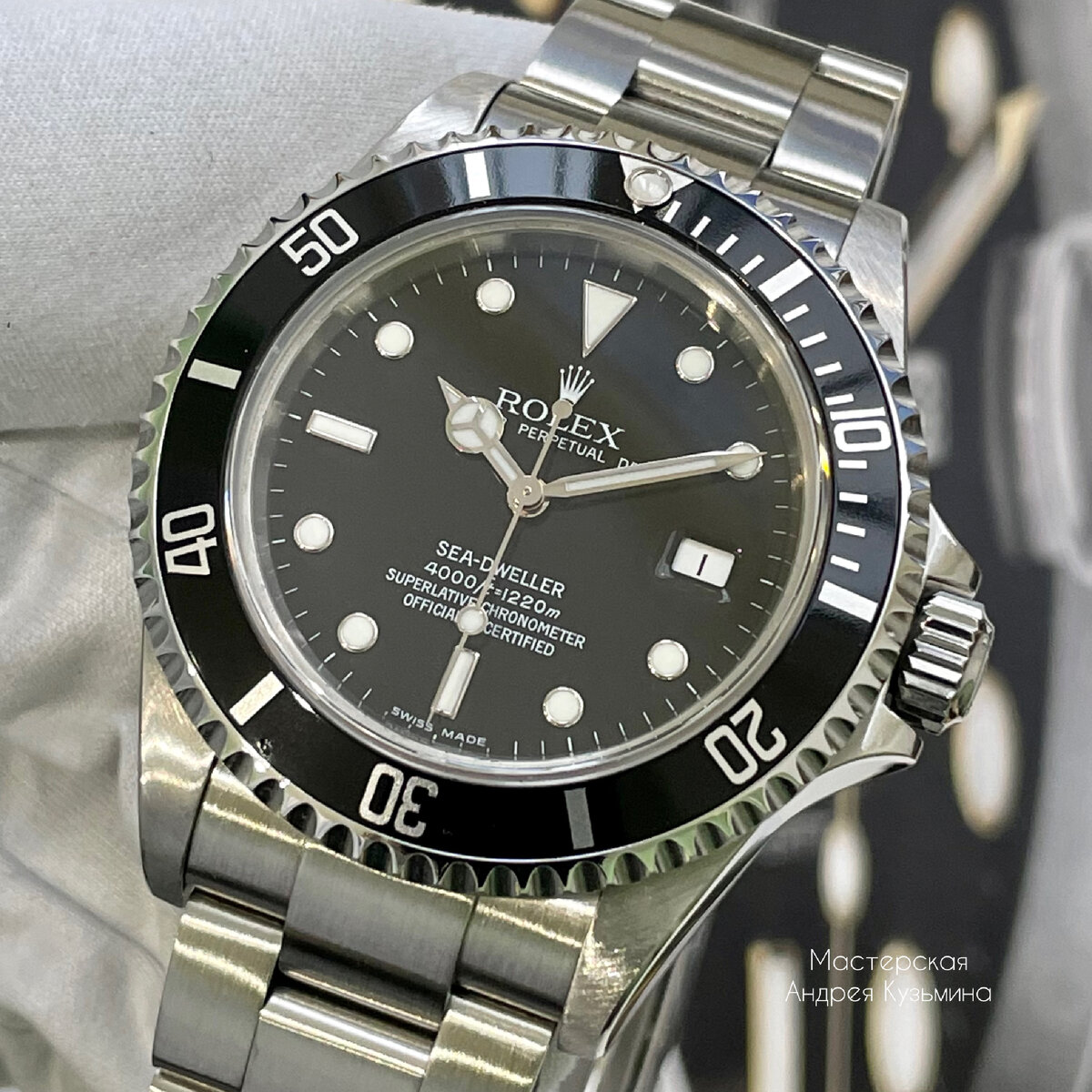 Добрый день друзья и читатели моего канала! Давно что-то не было Rolex в моей ленте и о них тоже. И вот расскажу Вам интересный факт о них: 23 января 1960 года была зафиксирована рекордная глубина - 10 918 метров. В этот день, в рамках проекта «Нектон», было совершенно погружение на дно Марианской впадины. В этом погружении принимали участие лейтенант ВМС США Дон Уолшем и исследователь Жак Пикар, а проводилось оно на батискафе «Триест». И в данном исследовании принимала участие компания Rolex и часы Rolex Deep Sea Special, которые были прикреплены к батискафу. После колоссального погружения Жак Пикар отметил: «Я имею честь подтвердить, что ваши часы работали на глубине 11 000 метров так же хорошо, как на суше». А теперь немного о часах, которые побывали у меня на обслуживании - Rolex Sea-Dweller - часы для покорения морских глубин. Это ультрапрочные дайверские часы, разработанные компанией специально для подводных исследований. Корпус и браслет часов выполнены из стали. Калибр 3235