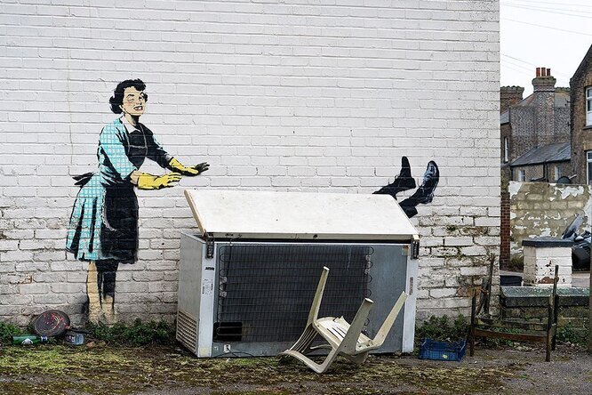 В День всех влюбленных уличный художник Бэнкси решил подарить поклонникам своего творчества валентинку в виде новой работы. Он посвятил ее проблеме домашнего насилия. Для России эта тема, остра, поскольку никакой закон не может защитить от избиений в стенах собственного дома. Бэнкси назвал свою работу «Тушь на День святого Валентина». На граффити, которое он оставил в городе Маргит красуется женщина с подбиты глазом. Художник обыграл картину с помощью холодильника, в который женщина прячем труп «любимого». Женщину Бэнкси изобразил в стиле 50-х. У нее привычная для тех лет укладка, сарафан в клетку и фартук. На руках желтые перчатки — домохозяйка устала терпеть домашнее насилие и избавилась от тирана. Жители Маргита сообщили СМИ, что вечером 13 февраля возле места, где в будущем появилось граффити, стоял фургон. Так маскируется Бэнкси. Напомним, что его личность до сих пор не раскрыта. Анонимный художник ездит по миру и оставляет на стенах зданий свои работы. Он приехал даже в Украину,