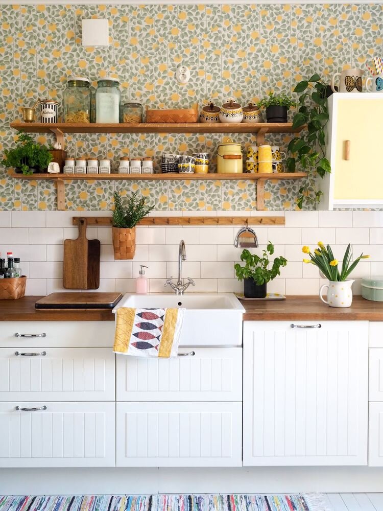 Нет никаких правил, когда дело доходит до дизайна интерьера вашей мечты - в конце концов, именно вам там жить. Однако, когда определенные вещи делаются в течение десятилетий, может показаться неправильным отклониться от нормы. В большинстве кухонных помещений можно найти плитку, установленную в качестве фартука. Однако, при планировании декора, важно рассмотреть альтернативы. В то время как обои обычно зарекомендованы для других помещениях, таких как гостиная, спальни и столовая, правильный принт может выглядеть потрясающе на вашей кухне. 01 Подчеркните шкафы монохромным принтом Если вы достаточно смелы, чтобы выбрать кухонный шкаф со стеклянными панелями, будет упущением не сделать фон. Эта зеленая кухня в сочетании с обоями с растительным принтом - идеальный акцент. 02 Яркость кухонного острова Остров является центральным элементом вашей кухни. Здесь ваша семья готовит еду вместе, собираются гости и где вы наслаждаетесь непринужденными беседами. Уделите ему внимание, которого он зас