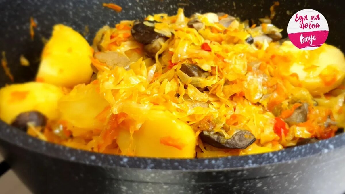 И без мяса можно приготовить сытный и, безусловно, вкусный обед/ужин для всей семьи, придется овощное рагу к месту и в постное меню – рецепт очень доступный. Овощное рагу с картофелем и капустой, а также грибами (по желанию, хотите, и мясо можете добавить (вдруг без него не захотите)) и еще бонусом полезный салат, который готовлю часто. Салат со свеклой и орехами, черносливом и чесноком один из самых простых и любимых нами. Итак, получается бюджетное меню, но от этого не менее вкусное. Овощное рагу с картофелем и капустой. Пошаговый рецепт 1. Нарезаем полукольцами лук и измельчаем на крупной терке крупную морковь. Затем обжариваем пору минут на растительном масле. 2. Добавляем к овощам нашинкованную капусту, солим, перчим и тушим до уменьшения капусты в объеме. 3. Добавляем картофель, когда капуста поджарится, сюда же добавим сладкий перец. Тушим минут 15 периодически не забывая мешать. 4. В конце добавляем грибы (использую отварные лесные), измельченный чеснок и душистый перец горошко