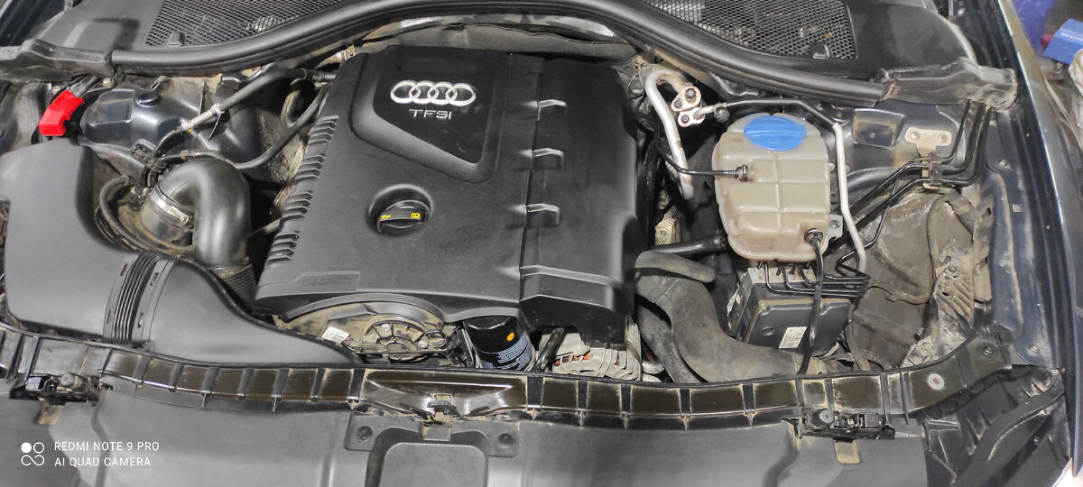 Доброго времени суток, дорогие читатели! Рассмотрим небольшой ремонт системы охлаждения на Audi A6, 2014, TFSI. Находится доп. помпа на этой модификации мотора, слева от расширительного бочка. 1. Снимаем экран двигателя. 2. Снимаем патрубки с помпы(сверху и справа) . 3.Отсоединяем разъёмы патрубков охлаждения двигателя чуть ниже насоса, т.к.они препятствуют демонтажу кронштейна. 4.Откручиваем слева и справа гайки на м10 на кронштейне. 5. И только потом отсоединяем фишку с разъёма насоса, чтобы её не повредить!!! 6.Собираем всё в обратном порядке. 7. Стираем ошибки. 8. Заливаем антифриз. Для тех, кто дошёл до конца, всё в подробностях Доп.насос находится тут: Что нужно сделать: 1) снимаем пластик 2) снимаем патрубок дроссельнной заслонки 3) снять 2 патрубка на электропомпе. 4) снять 2 патрубка основного охлаждения чуть левее( лучше всего это делать со стороны крыла) 5) Открутить 2 гайки крепления кронштейна насоса 6) Откручиваем насос с кронштейна Была выбрана фирма