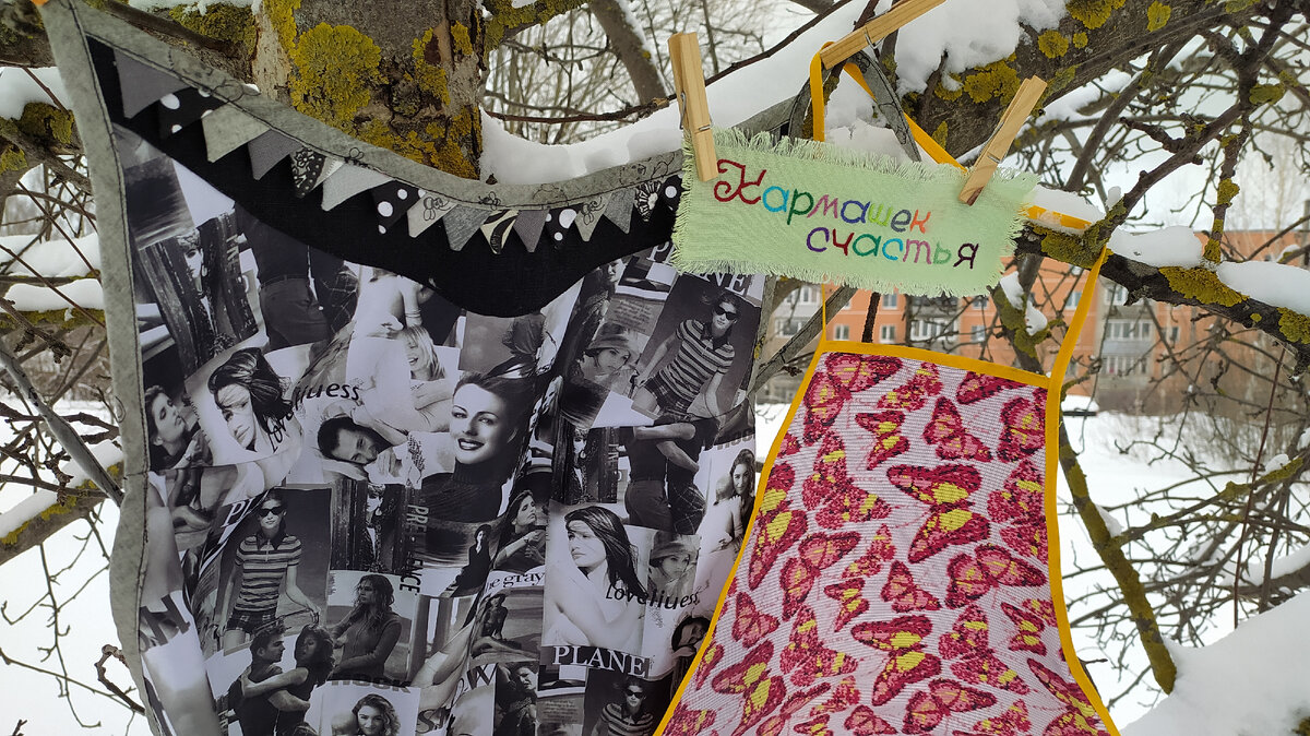 Фартук для внучки, а не то, что вам подумалось🦋🦋🦋, но и это тоже, потому что восторг! Будет заочный спор с прабабушкой и обнимашки с арт-фартуком, прилетевшем от избушки на курьих ножках, смотрите и вдохновляйтесь. Ссылка на ч/б шедевры с описанием пошива (там 2 фартука М и Ж) в финале статьи. Заманушное фото взрослых фартуков на этой же яблоне летом вот: А теперь к детскому фартучку для первоклассницы. Купила полметра курточной ткани, 6 м хлопковой косой бейки и нитки в тон. Предполагалось сшить 2 фартука в 2 дома. Были разные весëлые расцветочки, но остановилась я на этом варианте. Розовое - любит Маша. Бабочки - любим обе. Вязаный фон - потому что. О Маше и еë опытах в кулинарии здесь: Стало ясно, что фартук необходим, потому что мыть посуду, ляпаться с тестом, как и с прочими продуктами, Мария готова безостановочно. А наши чб напузные шедевры ей великоваты. И началась работа. Сложила полметра пополам поперëк и вдоль. Вырезала на глаз форму фартука. Получилось