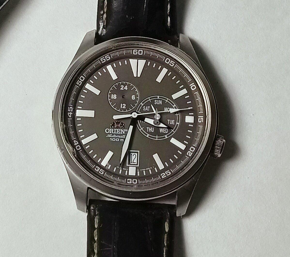 Доброго времени суток! Итак Ориент в ремонте. Часы на ходу, но есть небольшой нюанс - отпала маленькая стрелка и постоянно попадает между основными стрелками и часы соответственно останавливаются. Попробую устранить. Открутил крышку - процесс откручивания в предыдущей моей статье. Заводная головка здесь на резьбе - часы имеют хорошую водозащиту. Механизм в отличном состоянии. Снял вал и вынул механизм из корпуса, ну думаю, стрелку поставлю на место и готово - какой же я был наивный. У часов, после сильного удара оторвался циферблат. Снял стрелки, у циферблата оторвались обе ножки. Циферблат весьма массивный, а ножки тонкие - уже не первый Ориент с подобной проблемой. Вот они - ножки на которых он собственно и держится. Буду восстанавливать ножки проверенным и немного варварским способом. В качестве ножек буду использовать винты крепления циферблата Восток 24 калибра - они идеально подходят для этой цели. На месте отпавших ножек сверлю отверстие в циферблате, сверление делал с помощью