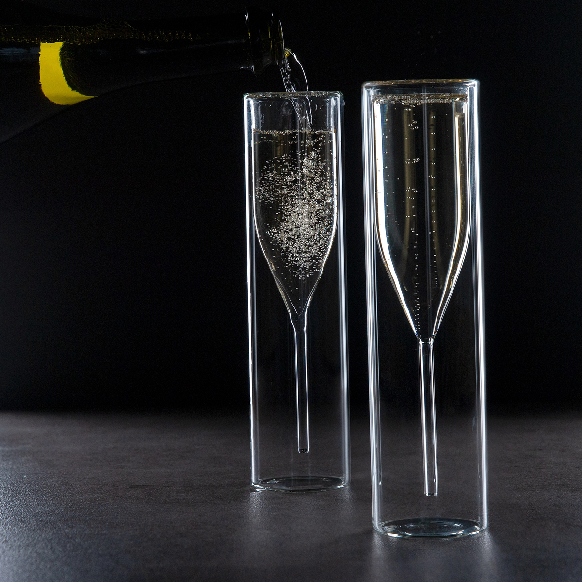 Очень необычно выглядят бокалы для шампанского, как будто втиснутые в корпус обычной стеклянной колбы из боросиликатного стекла. Набор из двух бокалов объемом 100 мл стоит 1990 р. Также нестандартно выглядят и стаканы для пива из рифленого стекла. У них красивая форма с изгибом. Пара стаканов объемом 600 мл стоит тоже 1990 р.