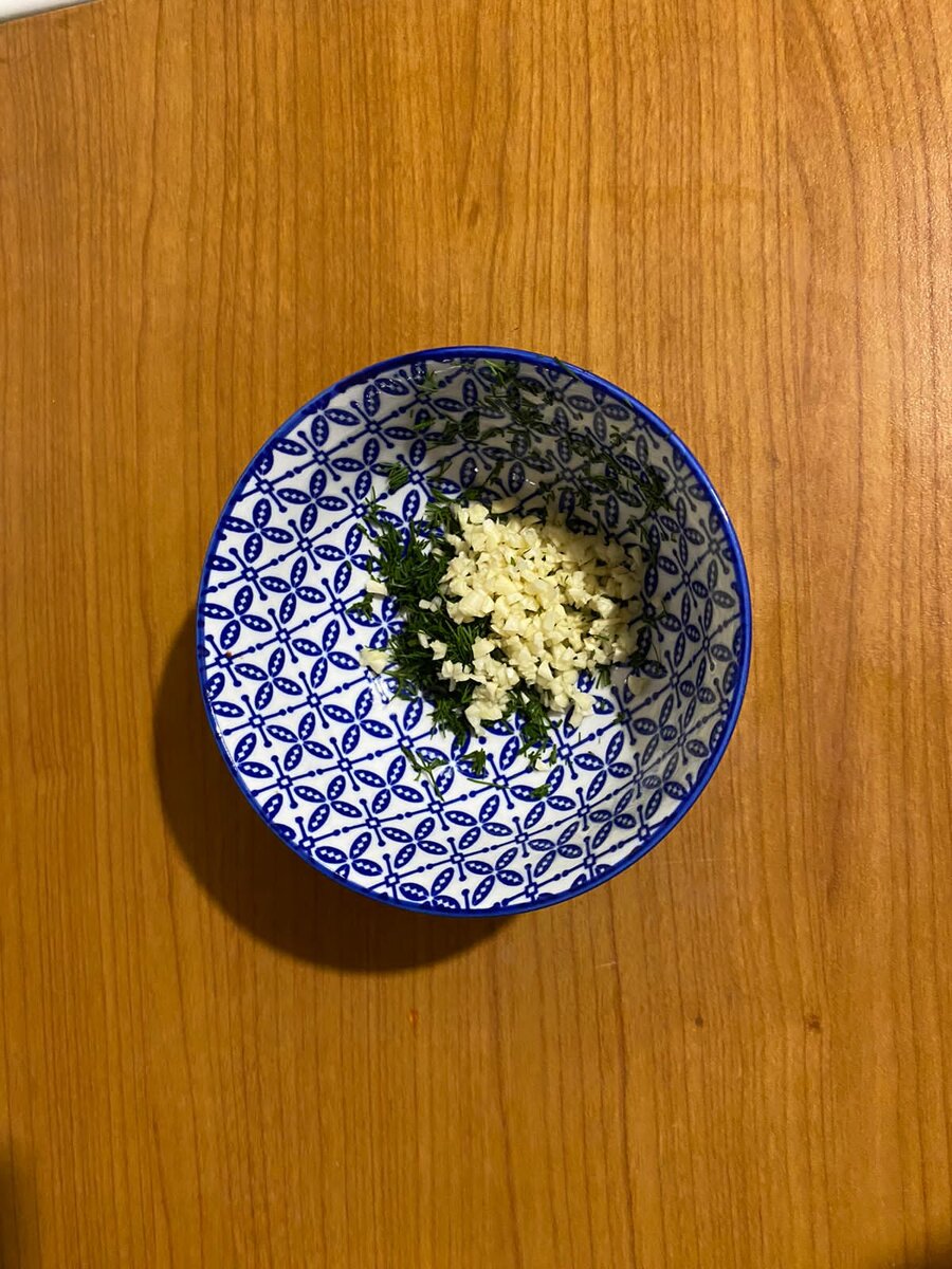 - нарезаем мелко чеснок (3 зубчика) и укроп