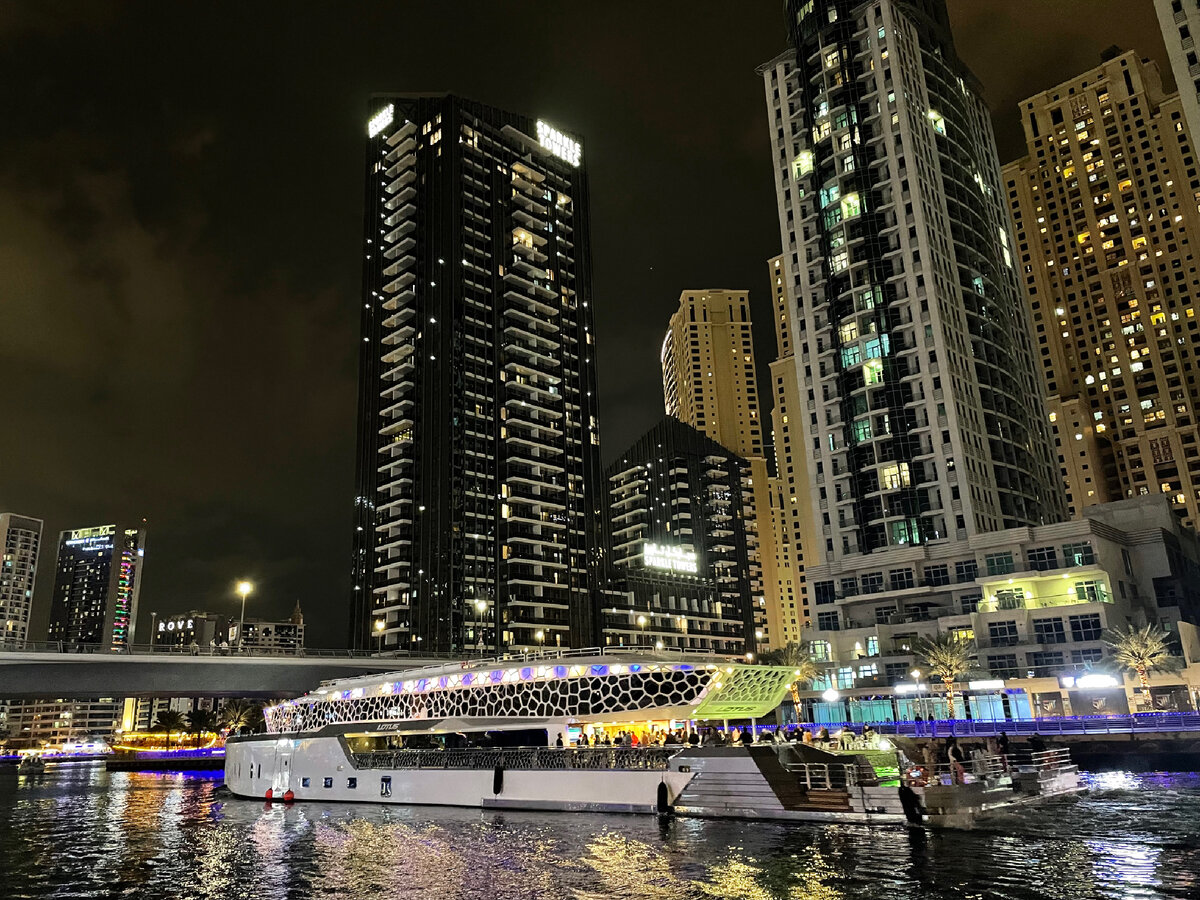 По маршруту проходили мимо острова Bluewater, на котором расположено колесо обозрения Око Дубая.