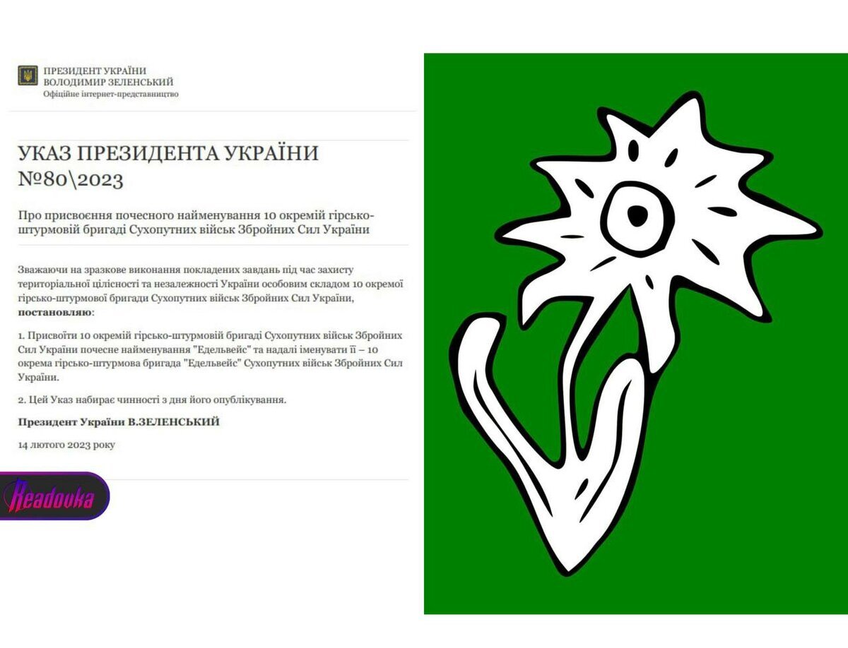 Зеленский присвоил горно-штурмовой бригаде ВСУ нацистское наименование «Эдельвейс»