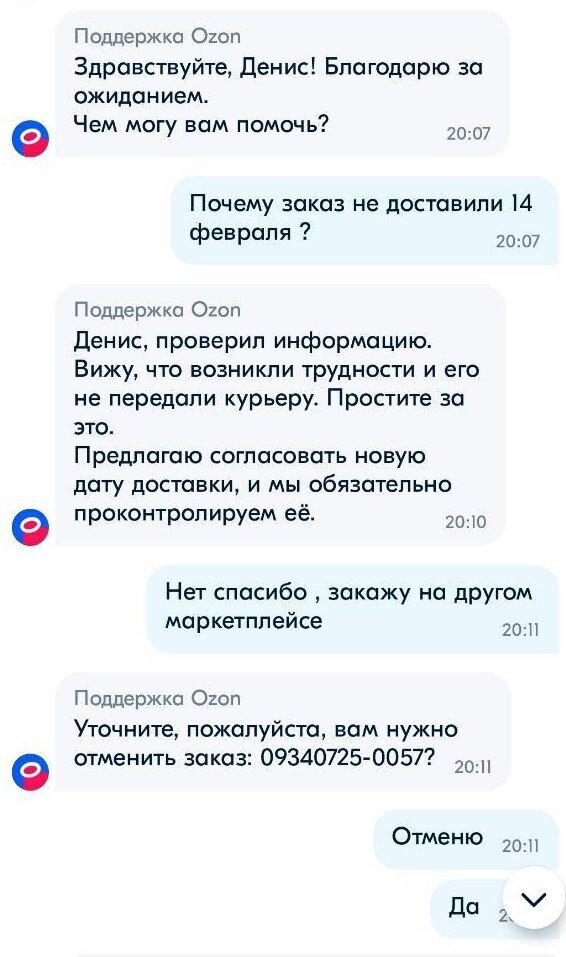 Заказал озонатор на озоне, сижу жду доставку, которая должна быть на следующий день, в назначенный день ничего не приехало, пишу в поддержку. Решил отменить заказ, т.к заказ нужен был именно в этот день. Сотрудник подтвердил сколько вернется на счет. В итоге на счет вернулось на 149 рублей меньше, то есть озон не вернул стоимость доставки. Интересуюсь, как же так, доставки ведь не было. Теперь мне пишут, что доставка была организована и деньги за нее отданы. Выходит, что первый сотрудник техподдержки ввел в заблуждение. Дальше уже прямо так и пишу, что как то странно когда за косяки сотрудников озона расплачиваются клиенты. Понятное дело, что смысл не в 149 рублях. Но видимо на репутацию озону наплевать. Update: Вопрос решён, Ozon ответил в комментариях, деньги за доставку возвращены. Пост автора GeraltFromMoriya. Узнать, что думают пикабушники.