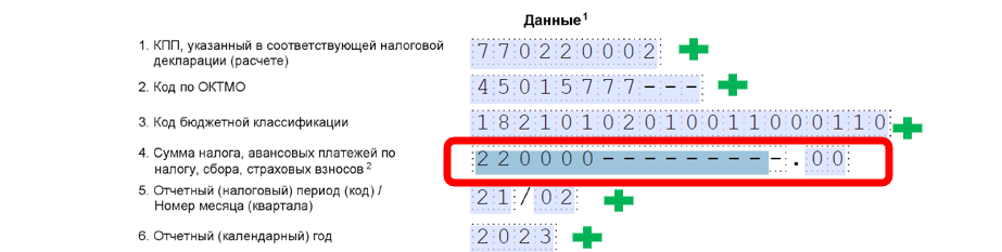 ФНС в письмах от 31.01.2023 г. № БС-3-11/1180@ и от 03.02.2023 г. № БС-3-11/1379@ отметила, что в случае, если в уведомлении об исчисленной сумме НДФЛ допущена ошибка в реквизитах, то налоговому агенту необходимо направить в налоговый орган новое уведомление с верными реквизитами. Между тем, новое уведомление будет содержать сведения только в отношении обязанности, по которой допущена ошибка. Налоговая служба в зависимости от вида ошибки рекомендует использовать следующий порядок внесения исправлений: 1. если в первичном уведомлении была неверно указана сумма, то в новом уведомлении данные ошибочного блока следует заполнить по аналогии с ранее поданным, то есть строки с КПП, ОКТМО, КБК, отчетным периодом и годом останутся без изменений, а в строке сумма налога следует указать корректную сумму; 2. если в первичном уведомлении допущены иные ошибки, а именно ошибка связана с неверным заполнением КПП, ОКТМО, КБК, отчетного периода или года, то в новом уведомлении указанные строки нужно буд