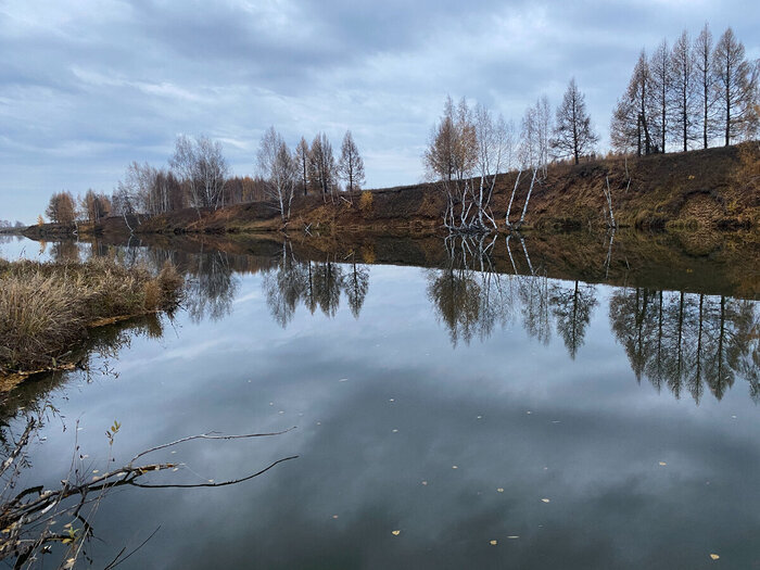 Всем привет. Было дело - по осени... Погода сегодня была - тяжёлая, свинцовая, но... Неожиданно тёплая и абсолютно безветренная. По сути, я сегодня поехал копать металлолом, куда глаза глядят. А глядели они меня в сторону этого озера: В округе ничего путного не нашел и двинулся вдоль речки, из которой оно наполнялось. Там, я заприметил небольшие кусы. Остановился и обнаружил там остатки каменных стен: Ожидаемо - кровельное железо: Значит - не сильно старые или покрывались потом. Так-же, мною была замечена небольшая пирамида: Металла было мало в округе. Рядом вскрышка - кто-то забирал грунт. Там стали попадаться осколки от старинных горшков. По времени был ограничен и двинулся дальше. Снова внимание привлекли могучие тополя, что росли группой вдоль речушки. Начал поиски среди корней и бум: Это цельная, металлическая... Не знаю, что это. Назвал - болванка: Вес, в районе 35 кг. Вроде, как - крашенная. Наконечники: Далее, там-же, была найдена плоская скоба. Тоже, довольно крупная: Сломанны