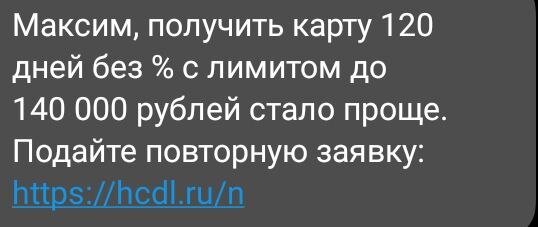Примечательно, банк через пару дней после отказа, сам мне присылал уведомление в СМС попробовать заказать кредитку еще раз (типа, мы верим в тебя, в этот раз у тебя все обязательно получится, парень).