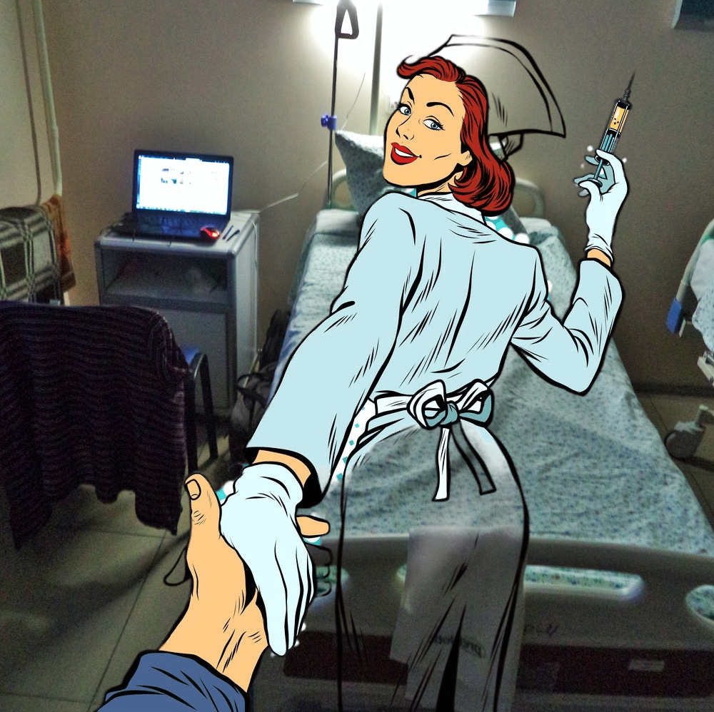 Медсестра заметила это и привязала руку бинтом на всякий случай. А то вдруг пациент решит помочь хирургу?