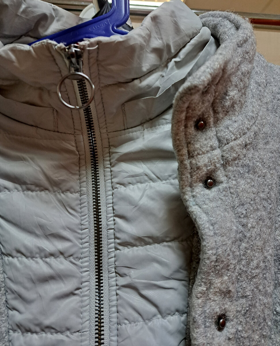 Редко смотрю верхнюю одежду, но тут приглянулось две вещи. Куртка Цена 2000 рублей Интересный (но уже не новый) эффект двойной куртки. В данном случае, наверное пиджака с подстежкой. Хороший немецкий бренд Street One Конечно, такой модели в продаже нет, но верхняя одежда на распродаже заявлена по такой цене: Сверху ткань букле. Манжеты с резинкой защищают руки от ветра. Ткань мягкая, не колется. В застёгнутом виде выглядит так: Для меня куртка коротковата, люблю вещи подлиннее, поэтому вернула обратно на вешалку. Жакет Цена 500 рублей Укороченный жакет со вставками из кожи (кожзама) Для меня немного непонятна длинна рукавов, то ли коротковата, то ли так и задумано... Жакет шикарный по своему исполнению. Итальянский бренд. Как оказалось, совсем не дешевый. Рандомное фото с сайта, для понимания порядка цен: Интересная окантовка по всему пиджаку, так и не поняла или кожа или очень хорошего качества кожзам. Карманы тоже "кожаные". Подкладка очень плотная, та же подкладка и на карманах. Т