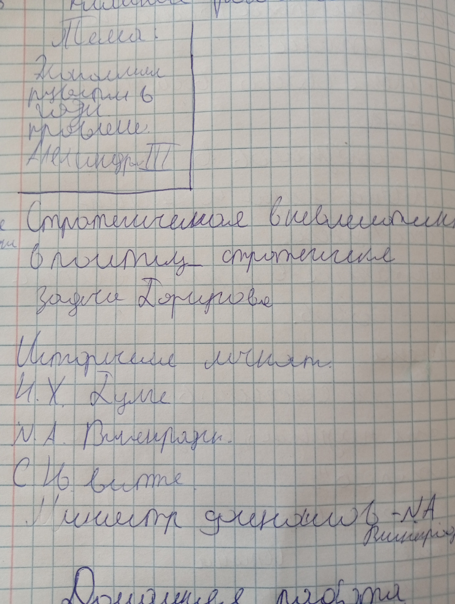 А может быть, и записано, но таким образом, как на верхнем фото. И это писала девочка-девятиклассница. Я разобрала с ходу только Витте. Самым главным был доклад по верхней фамилии. Кто это, блин? И так и сяк я гадала, приближая писульку к глазам и отодвигая. У девочки спрашивать бесполезно, главное, что она мне принесла свое задание. Остальное - мои проблемы.