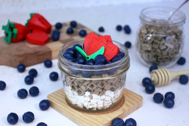 Начнём день с этого фруктового завтрака от Little John. Вам не показалось: ягодки сделаны из шляпок от минифигурок. Не знаю, как удалось их скрепить, но просто найти столько шляпок - уже задачка со звёздочкой.