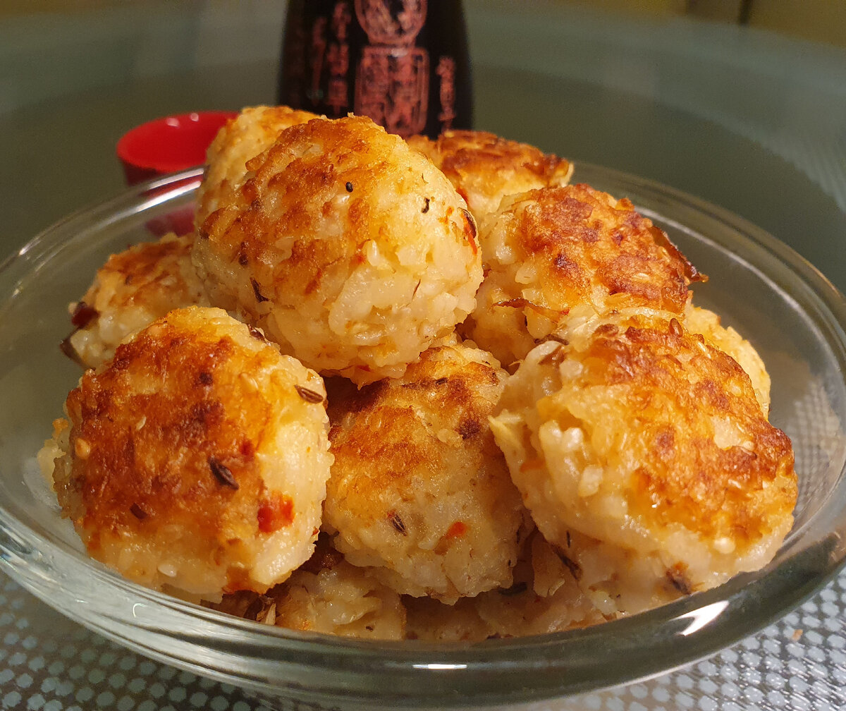 Если у вас остался рис, и вы не знаете, куда его пристроить. рис вареный 1ст, яйца 1шт, сухая стружка тунца, тмин, чеснок 1зуб, лимонный сок 1ч.л Рис смешать с яйцом. Добавить остальные ингредиенты, тщательно перемешать до однородности. Влажными руками скатать шарики и обжарить на сильно разогретой сковороде в масле. Регулярно встряхивать сковороду, чтобы шарики жарились равномерно. Они готовы, когда покроются аппетитной румяной корочкой со всех сторон. Такие шарики можно использовать в качестве горячей закуски, гарнира к рыбе/морепродуктам/мясу или как основное блюдо, подав с большой порцией любимого салата. Еще одни рецепт из разряда «слепила из того что было»: И про рис будет уместно почитать: