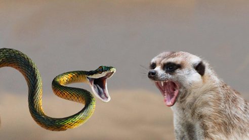 В данной ситуации нападающим является мангуст, а защищается змея. И только великолепная реакция, чувство дистанции и сильная челюсть, сжимающая горло, делают мангуста грозным убийцей ядовитых змей. Если бы у мангуста была слабая челюсть, то он не смог бы душить змей и для него змеи не были бы привлекательной пищей.