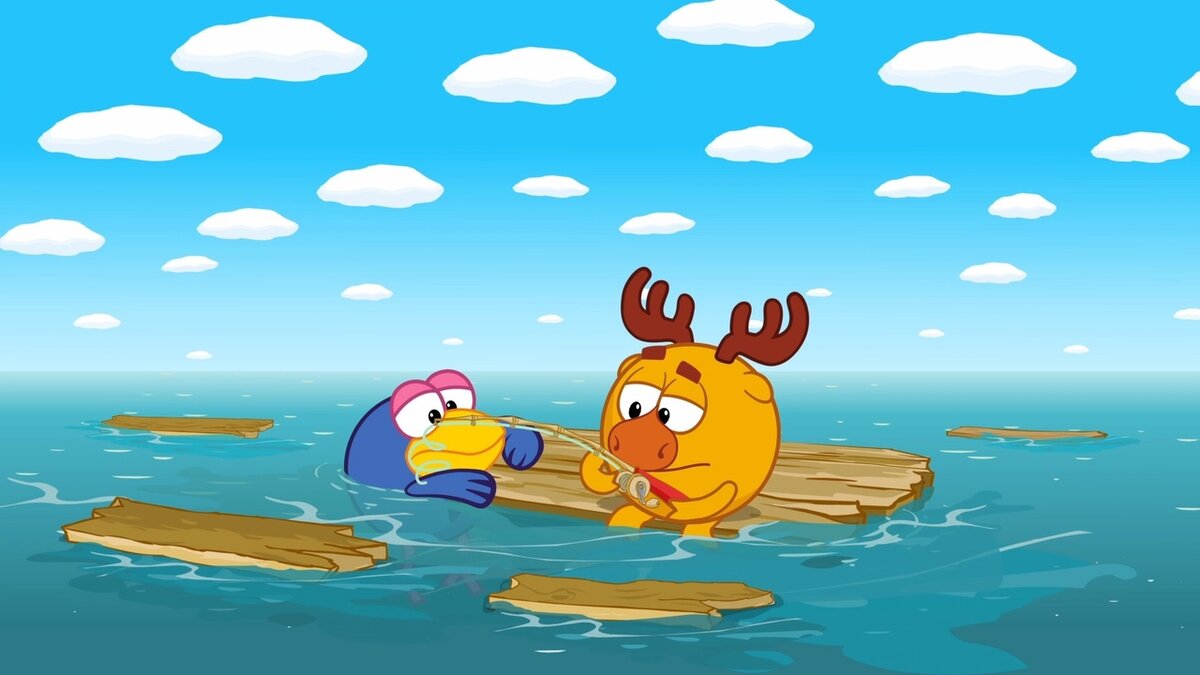 Сюжет: Карыч и Лосяш выдвинулись в шторм на рыбалку. Их настиг шторм, из-за чего их корабль разломился на куски. Выжив после кораблекрушения, полюбовавшись красивым видом, Лосяш и Карыч решают опрокинуться на доску и плыть по солнцу и сторонам света. Вечером, Лосяш признаётся, что именно он и съел тот торт на Новый год. Карыч сказал, что уже все давно знают об этом, т.к. его вся спина была в креме. Лосяш от стыда решает не плыть в сторону долины и решает утопить себя. И утопается. Ночью, Лосяш сидит на доске, которую тащит Карыч. Карыч уже не знает, правильно ли они плывут, что возможно, они плывут туда, где о Лосяше вообще не знают. В наказании себе, он решает плыть сам. Но быстро устаёт. Карыч предлагает ему держаться на доску, но тот отказывается. Он мечтал ещё с детства хорошо плавать, но так и не научился. И вновь пошёл на дно. Карыч говорит, что нужно уметь прощать не только других, но и себя. Они прощают друг друга и видят остров. Они приземляются на неё и радуются ему.