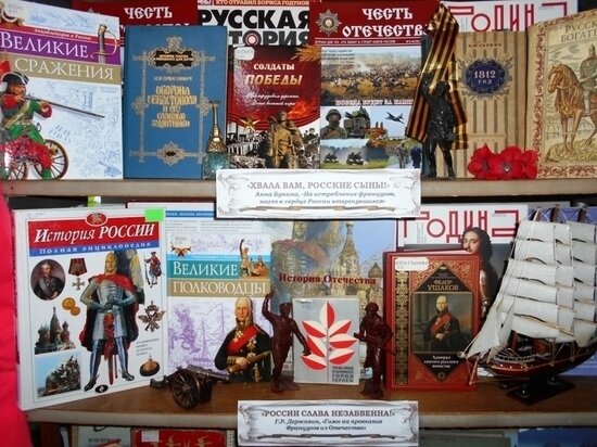 Многовековая летопись героической истории России включает множество доблестных дат воинской славы, в числе которых – День Защитника Отечества. Этот общенародный праздник – дань уважения русским воинам всех времен, не отступившим перед натиском врагов на Чудском озере и под Полтавой, на Куликовском и Бородинском полях, под Курском и Сталинградом, Керчью и Севастополем, других местах воинской славы и доблести. На их подвигах выросло не одно поколение Защитников Отечества, которые и сегодня мужественно отстаивают право нашей Родины на свободу, мир и независимость, свято помня гордые слова русского полководца Александра Суворова: «Мы русские, мы все одолеем!». Ко Дню Защитника Отечества, ежегодно отмечаемому 23 февраля, симферопольская библиотека-филиал №4 им. М.М. Коцюбинского приурочила выставку гордой памяти «И славили Отчизну меч и слово!», цитатой-лейтмотивом которой выступила гордая фраза министра обороны СССР А.А. Гречко, ушедшая в народ и ставшая, благодаря легендарному фильму «Офи